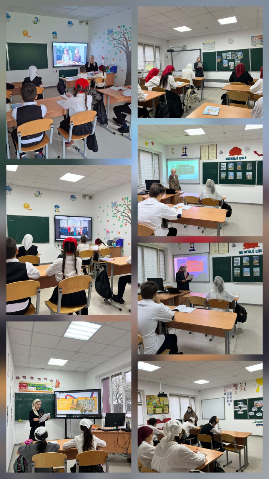 20.10.2025г. В МБОУ "Марзой-Мохкская СОШ" проходят уроки "Разговоры о важном" на тему "О городах России.", посвященные ко Дню народного единства.